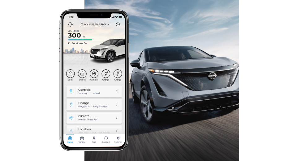 Download the NissanConnect® EV & Services app to control select vehicle charging functions and keep tabs on your battery status.