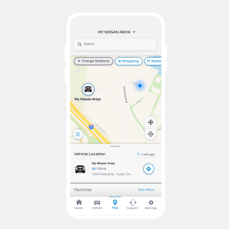 Download the MyNISSAN app or NissanConnect EV app to access EV features and charging stations. 8