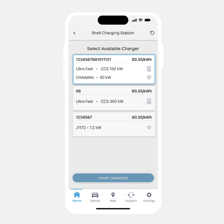 Select the available in-network public charger you would like to use, then plug in your vehicle.